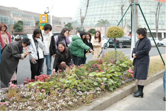培训特邀园林工程师徐平现场授课。培训伊始,徐老师向员工们介绍了近年来校园绿化景观发展变化、设计理念,带领大家参观了位于校园主干道绿化带中的小景观。徐老师围绕春季绿植养护要点,以“理论精讲+实操教学”相结合的方式,为大家系统讲解了常见绿植的生长习性、浇水频次、光照管理及病虫害防治等知识,并结合办公场景常见绿植养护误区答疑解惑,用通俗易懂的语言把专业知识转化为易学易用的实操技能,帮助参训员工快速掌握绿植管护核心要点。