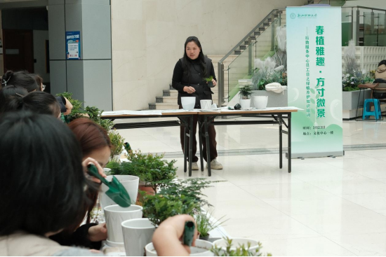 此次活动将技能培训与文化体验有机融合,既提升了后勤员工绿植养护专业能力,为优化办公与公共区域环境打下基础,又传递了绿色健康生活理念。中心将持续开展形式多样的技能提升培训与文化浸润活动,不断强化服务本领、凝聚团队力量,切实把学习成果转化为推动工作的实际成效,为营造优美宜居的校园环境贡献力量。
