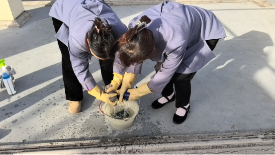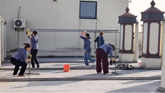 全体参赛人员全情投入、操作专业,经过紧张有序的实操比拼,立潮楼顶层平台环境焕然一新,充分展现了公寓保洁队伍扎实的业务功底与良好的职业素养。