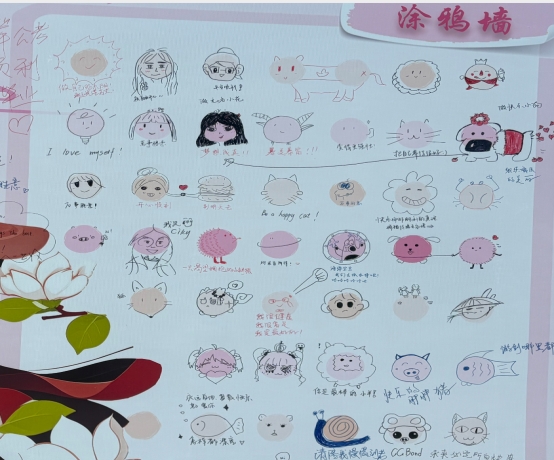 现场不仅有深情的文字,还有可爱的涂鸦。有人画下一朵小花,有人变身一只渴望拥抱的小刺猬,有人留下“到明天去”的洒脱。这面墙,是情绪的回收站,更是创意的聚集地。