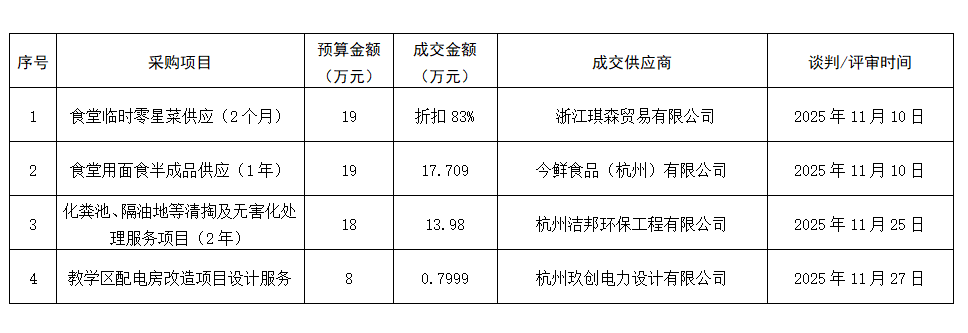 2-20万元采购项目结果公告(2025年10-11月)